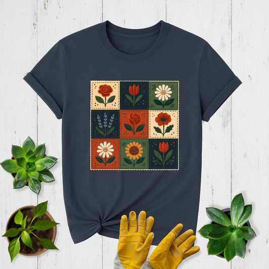 Folk Checkerboard Garden Quilt T-shirt